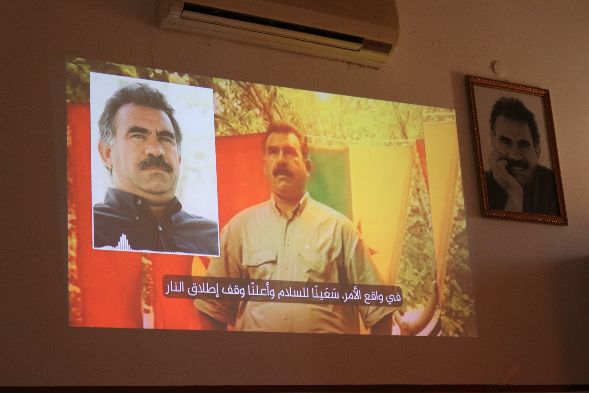 تلاها عرض سنفزيوني لسيرة حياة القائد والمسيرة النضالية التي أسس لها والمؤامرة التي أحيكت ضده من قبل دولة الإحتلال التركي والدول المناهضة لحرية وإرادة الشعوب .
