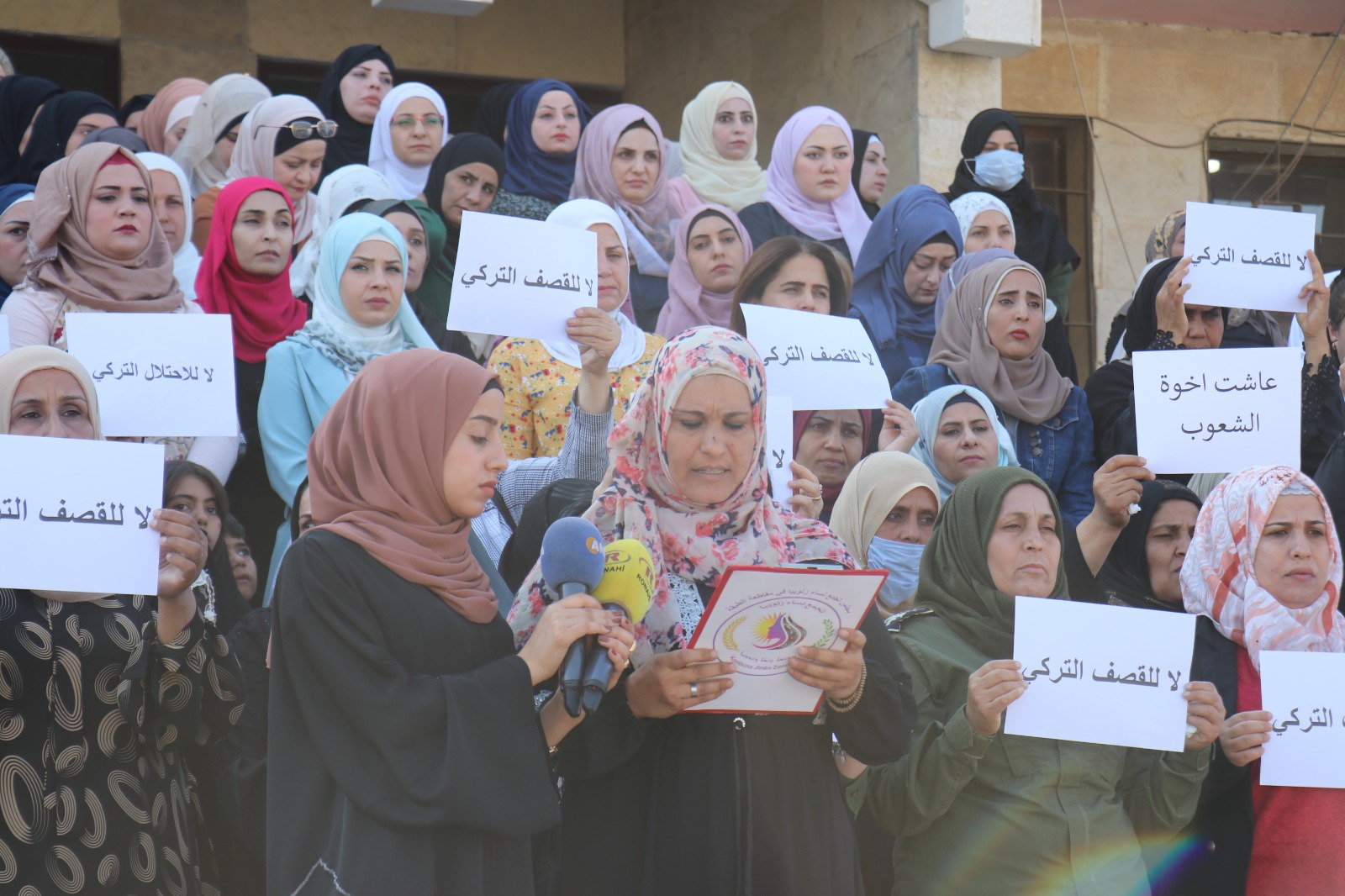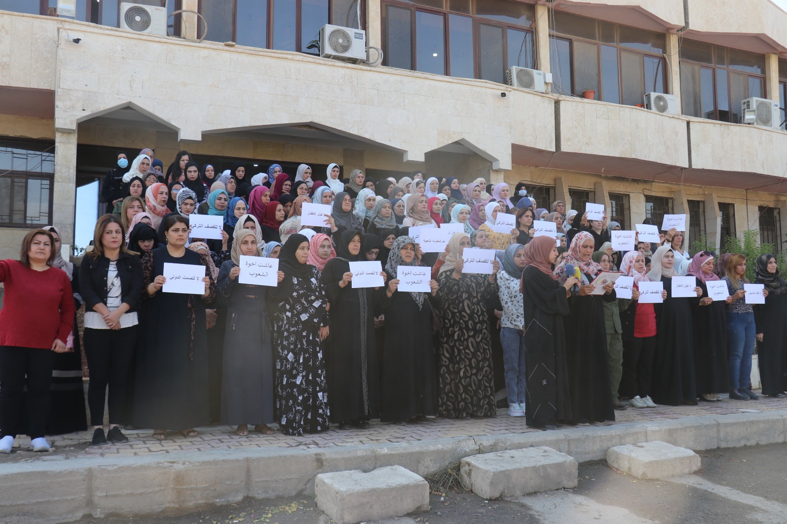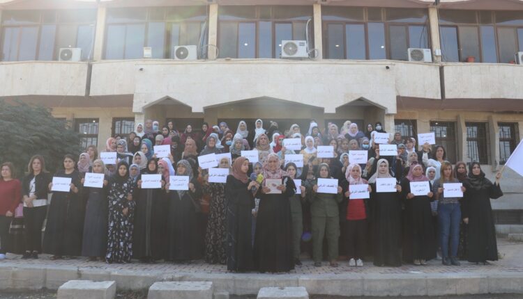 بإسم جميع الحركات والمنظمات النسائية في مقاطعة الطبقة ندين وبقوة هذه الجرائم والإنتهاكات