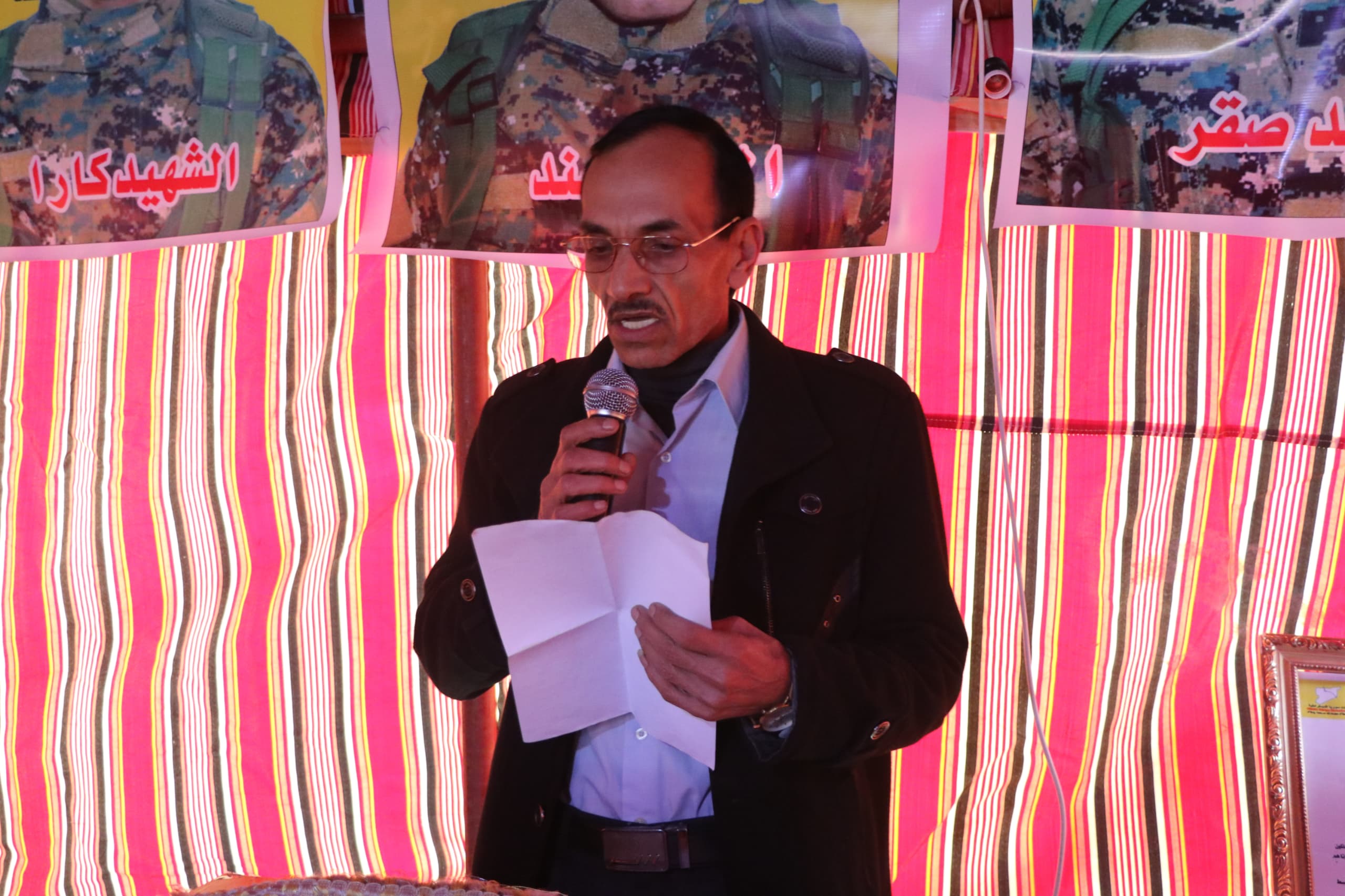 بدوره أشار الرئيس المشترك لمجلس عوائل الشهداء موسى التمر خلال كلمته التي ألقاها بإسم المجلس أن إرث الشهداء سيبقى عزيزاً مصاناً وستبقى تضحياتهم خالدة بأذهان شعوب المنطقة .
