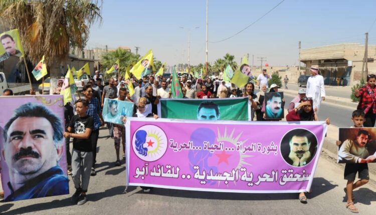 وأختتمت المسيرة بكلمات منها كلمة للرفيقة كليندار حنان رئيسة مكتب المرأة الشابة بهيئة الشباب والرياضة أكدت خلالها على التكاتف بين المكونات ضد الإحتلال التركي ومجابهة خطر خلاياه والوقوف بوجه مشاريعه الإستعمارية وإجهاض مخططاته كما أكدت على التوحد خلف قوات سوريا الديمقراطية لتحرير الأراضي السورية المحتلة في عفرين وسري كانيه وكري سبيه .