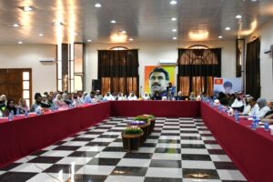 وخلال شرح المحاور من قبل أعضاء ديوان الملتقى تم التطرق إلى خط نضال القائد الذي ظهر منذ صغر سنه وطبيعة شخصيته الثورية التي بدأت بالانتفاض بدءاً من العادات والتقاليد التي سيطرت على مجتمعه في القرية ووصولاً إلى حياته الجامعية التي كانت شرارة البداية لتنظيم الحركة الثورية برفقة زملاءه الوطنيين الذي ساروا مع القائد في خط نضاله الذي وحد شتات المجتمع وتمكن من مزج الخليط المجتمعي تحت مشروع واحد يضمن كافة الحقوق والحريات التي سلبت عبر التاريخ من شعوب المنطقة.