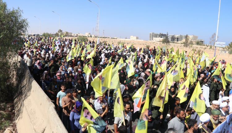 تحت شعار “حرية القائد آبو ضمانة السلام والديمقراطية”، شهدت مدينة الطبقة اليوم مسيرة راجلة حاشدة شارك فيها المئات من أهالي مقاطعتي الطبقة وعفرين والشهباء ، إلى جانب المؤسسات المدنية والعسكرية والأحزاب السياسية، وممثلين عن الإدارة الذاتية ومجلس تجمع نساء زنوبيا، للمطالبة بالحرية الجسدية للقائد عبد الله أوجلان.