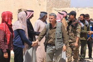 أدى وفد من الإدارة المدنية الديمقراطية لمنطقة الطبقة ومجلس عوائل الشهداء والمجلس العسكري وقوى الأمن الداخلي ومؤسسات ناحية الجرنية وبلدة المحمودلي، واجب العزاء لذوي الشهيد من قوى الأمن الداخلي ( ياسر الجاسم) .