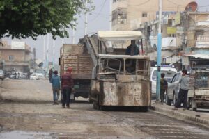 بدء المرحلة الأولى من مشروع تعبيد الطرقات في منطقة الطبقة ، وذلك من خلال تصفير وقشط الزفت في الشوارع المستهدفة.